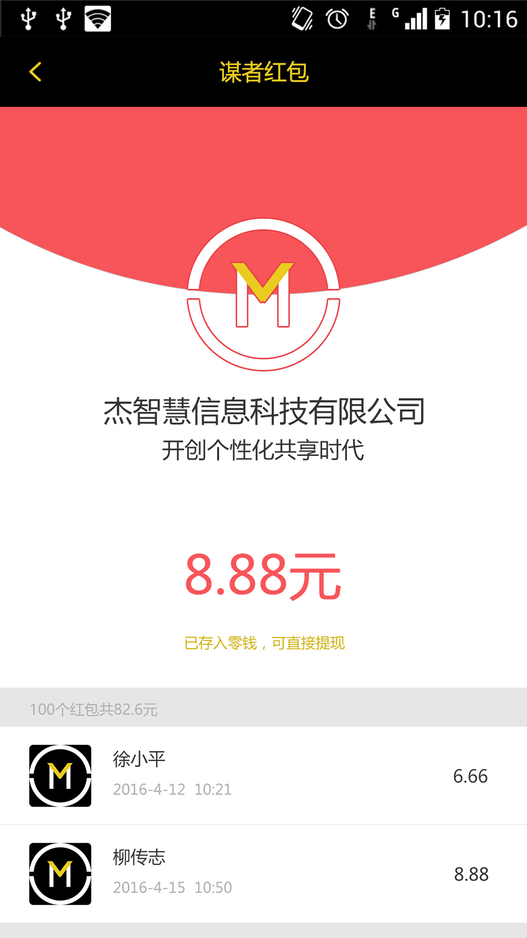 谋者app是杰智慧(北京)信息科技有限公司旗下的第一款产品,基于数据挖掘技术和‘倒贴钱模式‘,用户不仅能在信息爆炸时代简单高效地获取符合自身特点的优质内容并产生优质内容,还能顺便在每篇优质文章中抢红包,有用、有趣、好玩!【软件特点】