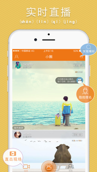 小圈直播带您发现精彩有趣的人和事,也把真实的您直接秀给私密好友、志趣同好、热心粉丝