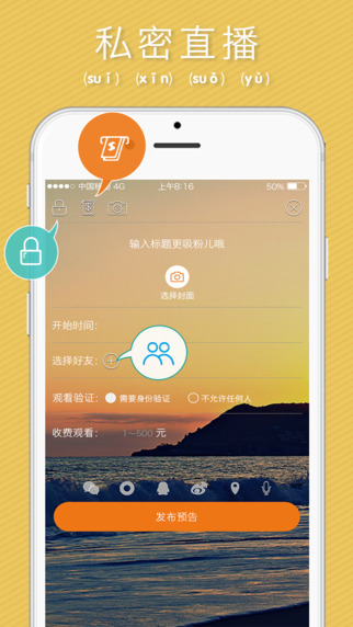 小圈直播能帮您一键分享直播现场及邀请微信、微博和QQ好友,也能帮您一键授权私密好友