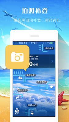 【拍照补登】一键拍照自动补登,省时省心;【里程管理】里程随身管理,随时查看明细;