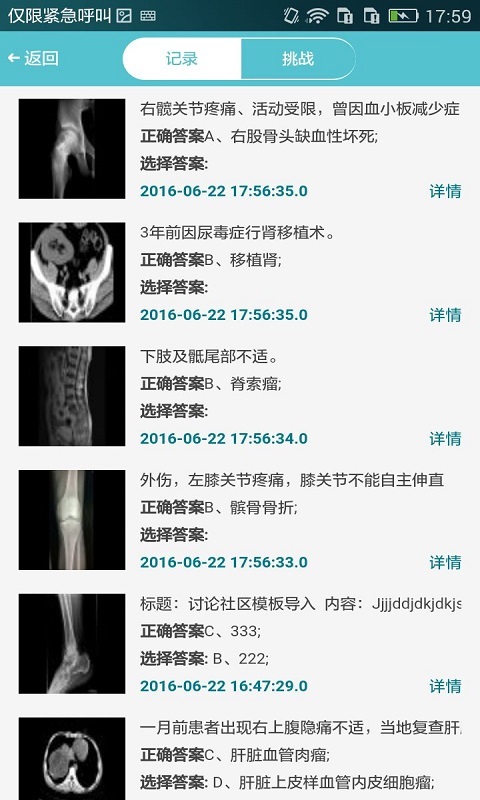1、病例栏将原病例变成答题病例,新增经典病例类型的病例。2、病例栏中有“题”字样的为答题病例,区别显示经典病例和答题病例。