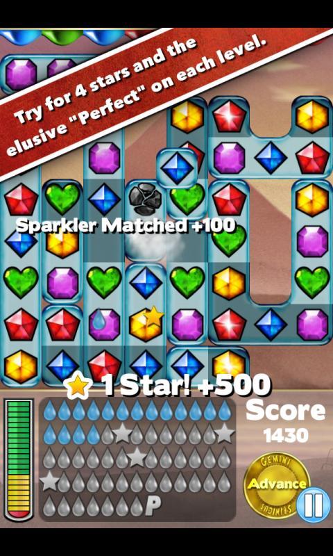 GemSpinnerIILite(宝石旅程2)是一款独特的创意宝石消除类的游戏,它将解谜类游戏的元素融合到游戏中来,拥有比较曲折的故事情节。游戏的玩法上,和其他的宝石消除类的也都比较类似,通过交换相邻两个宝石的位置来让三个或三个以上相同颜色的宝石在一起,这样就能够将它们消除掉。