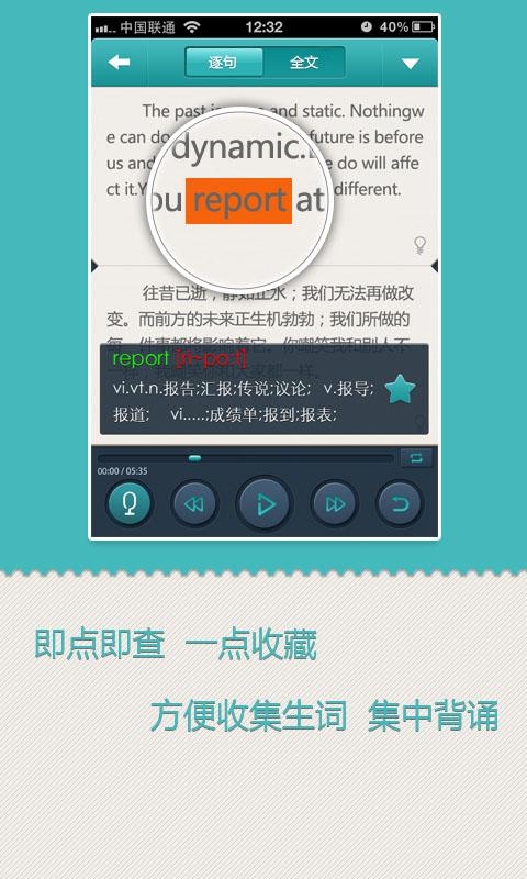 Repeator提供了跟读功能,通过与原音对比,帮您练习发音.