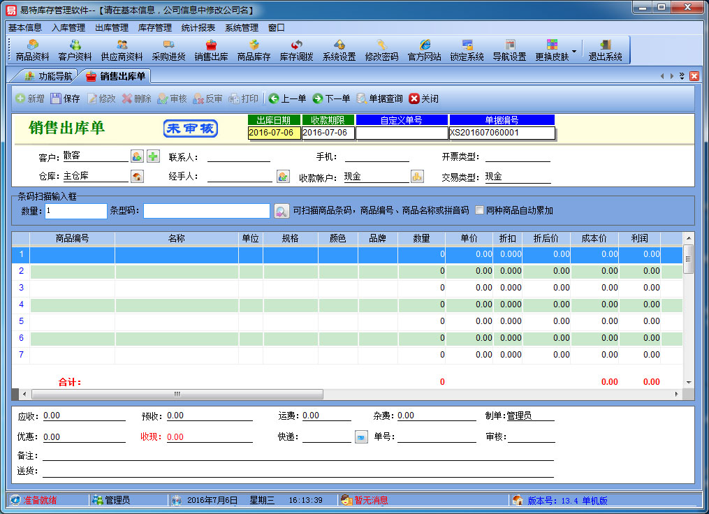 易特库存管理软件是一款专业的仓库管理软件,其中包含商品销售管理系统 ,库存管理系统(仓库管理系统),报表系统等子模块。软件界面设计简洁,美观,其人性化的软件流程,使普通用户不需培训也能很快掌握软件操作使用方法,上手极易。强大报表与集成查询功能是本软件的最大特色,所有功能在用户需要的使用地方自然体现,不用打开多个窗口重复查询。易特库存管理软件广泛适用于企业,商贸公司,个体门店等用于商业销售管理, 库存管理等,客户管理,员工管理等场合,是您企业进行信息化管理的强大工具。