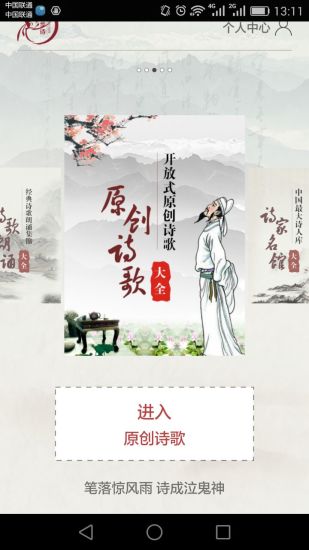 以打造新时代诗人与诗歌原创、诗歌与朗诵、诗歌与艺演、诗歌与歌曲全新互动平台为核心的手机应用程序(APP),像微信、滴滴打车一样独立在手机运行。