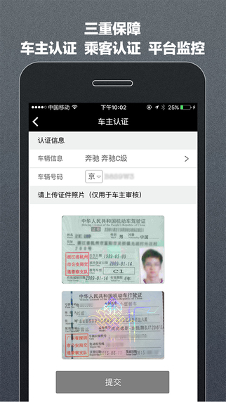 我们会对所有用户进行严格审核:车主需通过身份、车辆的实名认证才能接单,乘客则需要通过照片认证才能发单,平台实时监控,电话通话隐藏双方号码…… 一心只为保障用户权益。