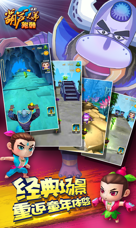 葫芦兄弟跑酷是一款休闲的动作跑酷类手游。该游戏采用经典的动画《葫芦兄弟》改编而成,真实的还原了动画中的经典剧情和原始人物,融入了全新的游戏元素,带给玩家比动画更棒的游戏体验。