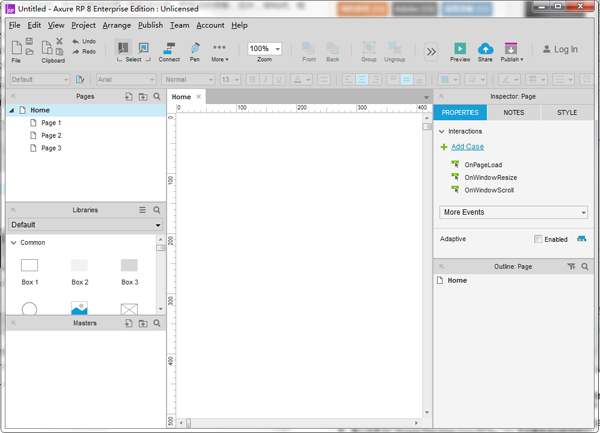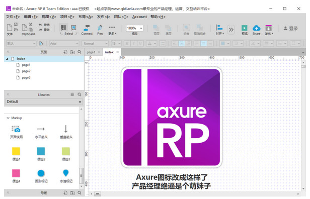 Axure RP 8.0(网页原型设计工具)是一个产品经理必备的交互原型设计软件,能够高效率制作产品原型,快速绘制线框图、流程图、网站架构图、示意图、HTML模版等。【软件特点】