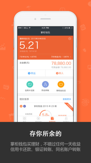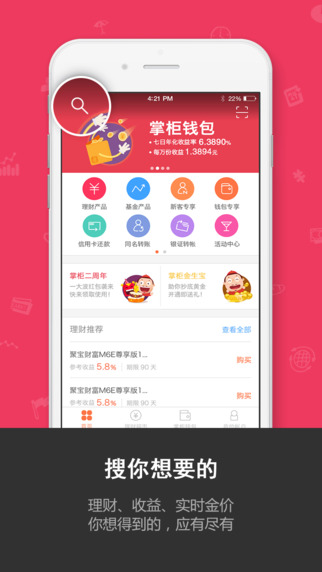 -掌柜钱包、银行理财、银证转账、基金、贵金属等品种全覆盖