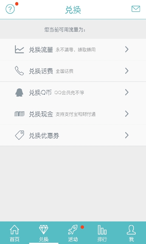 【赚流量】简单和人性化的流量获取:激活即获赠10M流量。微博、微信、QQ空间随你转,好东西要和好朋友分享,动动手指,流量到手!【兑流量】可以兑换流量、Q币、话费、支付宝、财付通、优惠券,各种方式,总有你想要的。