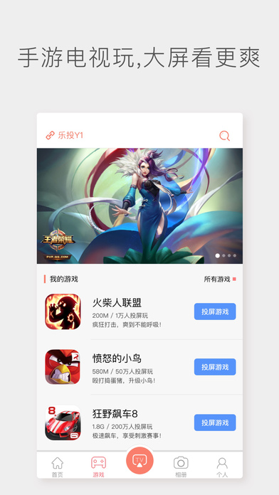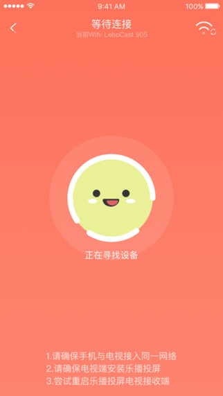 -手机App与乐播投屏TV端成功连接后,点击投屏按钮即可完成投屏,并增加了App内引导,让小白用户更容易上手;