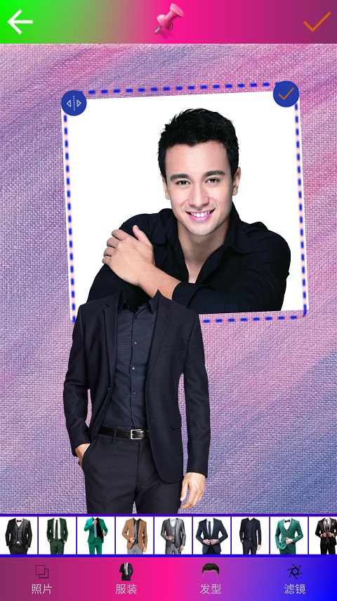 精选时尚的男士西服,只需要简单的操作,就可以给你的照片加上流行的西服,一站式拍照处理,也可以选择相册中的照片进行处理。你也可以充分发掘你的创意,随心所欲创建自己独特的装扮来展示照片。通过这款应用程序,你能获取最新最流行的男式西服,随时随地让快乐陪伴在你的身边。让生活充满乐趣,喜欢的你还等什么,赶快来下载使用吧!