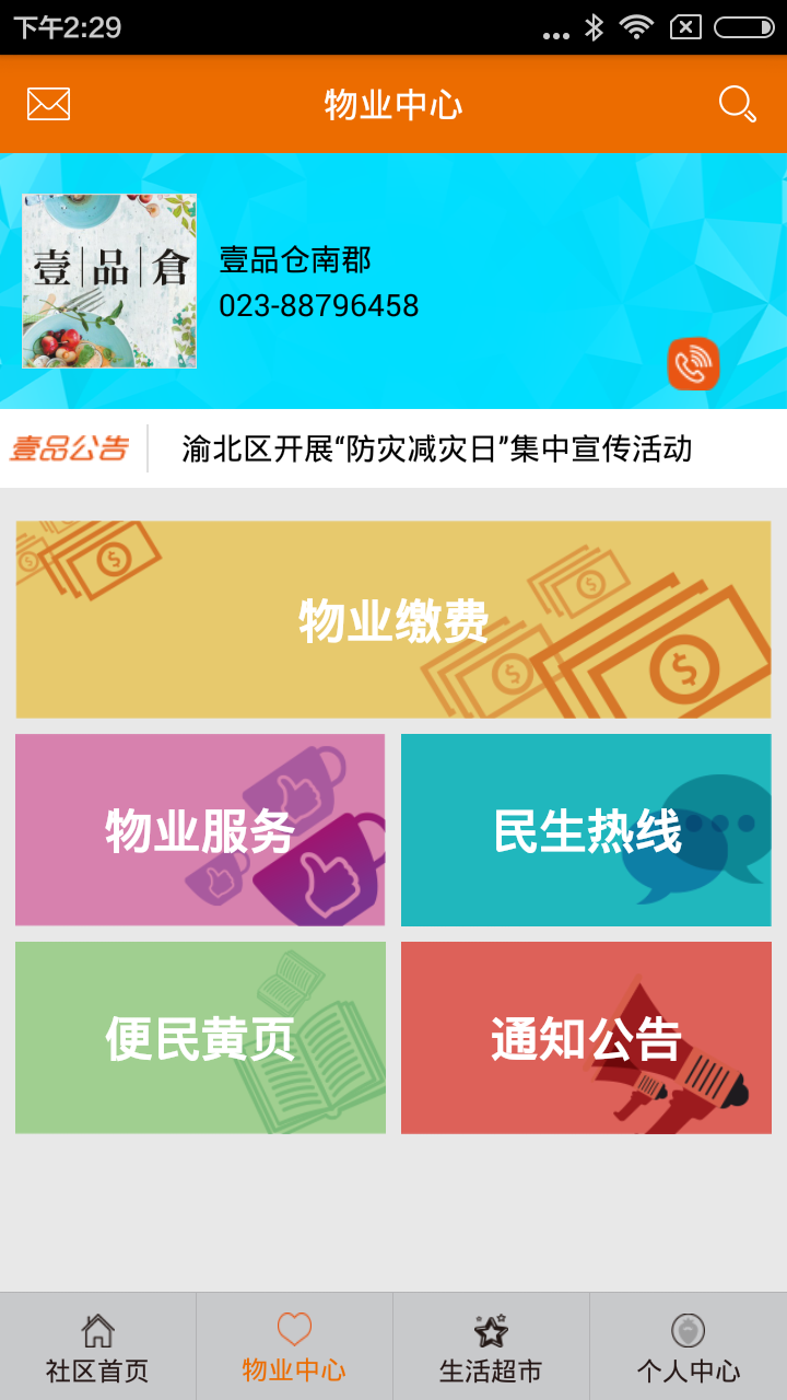 物业深化服务:政府通知、物业通告、物业活动、维修维保、投诉建议查询缴费:查询水电气、有线电视,线上缴费