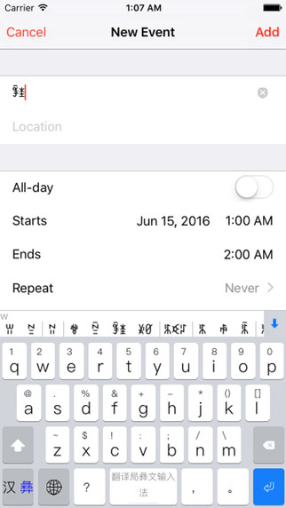 该软件是国内首款可以应用在iOS系统智能手机上的彝文输入法软件。软件采用清华灵云识别技术,将汉文整句智能拼音输入、汉文手写输入、汉文语音输入、彝文笔画输入、彝文简拼输入、彝文全拼输入、英文输入、数字输入、符号和笑脸输入等多项技术集于一体,功能强大,操作简单,使用方便。