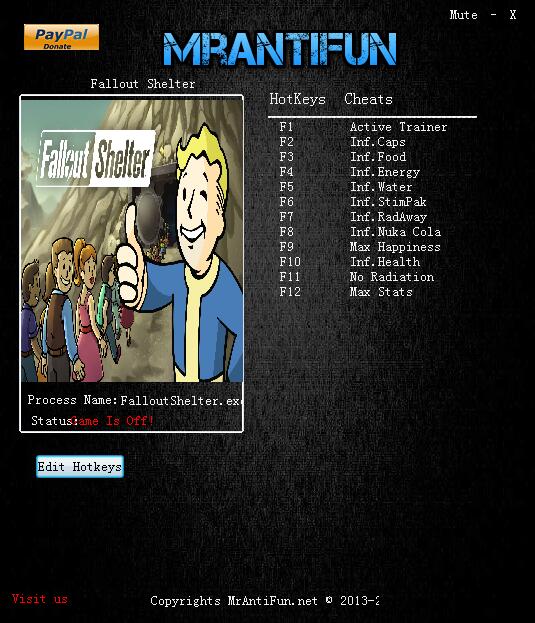 F1ActiveTrainer激活修改器F2Inf.Caps无限瓶盖