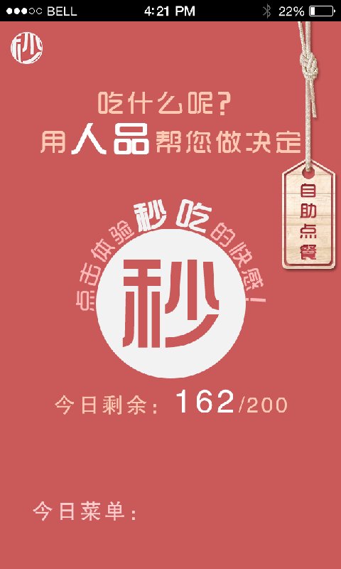 一款能够解决您为吃饭吃什么而发愁的软件,一键订餐,避免了在选餐上浪费太多时间,简单,方便,快捷,让您的生活变得简单