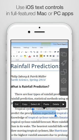 外出时不再需要带着笔记型电脑。放心地留在家裡吧。我们独特的“Applification?”技术能够让您以iPhone或iPad上应用程式的方式使用所有桌面应用程式。