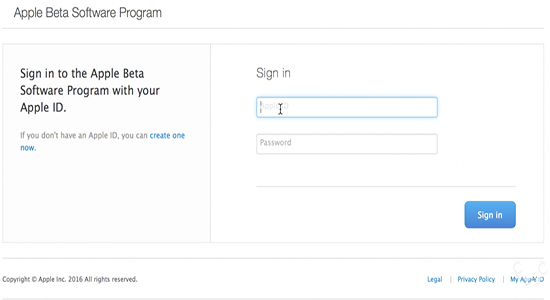 需要登录刚才注册加入 Apple Beta 版软件计划的 Apple ID。
