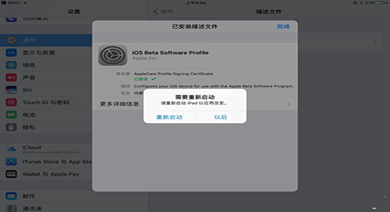 备份好后,在准备安装测试版的设备,打开Safari,访问beta.apple.com/profile以下载配置描述文件。