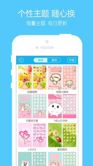主题控app一网打尽各种清新,可爱,酷炫,唯美,情侣,卡通,节日,日历壁纸,,让你的手机与众不同。不仅可以下载6plus的主题,还可以DIY你的专属主题哦,背景,图标,书架,装饰随心DIY。