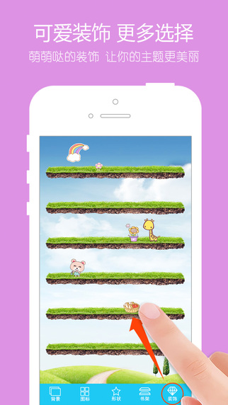 4.新增加DIY功能,可以随意DIY你想要的任意主题,图标,书架,形状,装饰等定期更新。