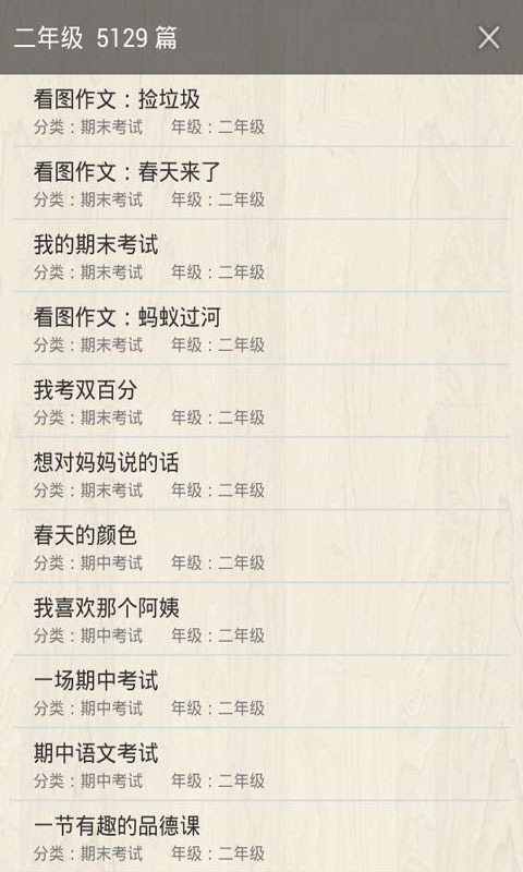 小学作文大全,搜集小学生作文*齐全的免费作文参考应用,共搜集了互联网上20000多篇小学生作文,可以按年纪、按写作类别归类、查询、阅览。支持本地化、网络智能搜索,是帮助父母或老师提高学生写作能力的得力工具,小学作文大全完全免费,作文全搜集自互联网,若有版权问题请及时联系APP作者及时删除,谢谢大家的支持。以上描述中存在违反广告法的内容,自动用*代替
