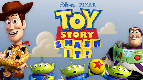 和所有的抛射砸毁游戏一样,这一作中的积木建筑也有特定突破点,开始的两三关中系统会教你怎样找突破点,按左右方向键移动巴斯光年,可以调整主视角的角度,变换方向来砸球。击中木块让堆叠的木块塔倒下,上面站着的外星人就会自动逃走,同时如果用球砸中金黄色方块或者倒塌的时候碰到方块,就能得到额外加分。注意这里球只能砸往积木或者玻璃方块,直接瞄准外星人的话,它们会举起盾牌防御,基本是打不下来的。尽管如此,我们也还是有很多办法把这些绿色的小东西砸下来,除了找到合适角度和一个突破点之外,巴斯光年的旋风弹也非常有用,旋风弹的作用是贯通,对准目标砸出去后,点击黄色的按钮就会旋转,击中目标会继续向前飞。因为本作中没有商城什么的,最好用的道具就是普通球和旋风弹,所以游戏的益智核心就很突出了。