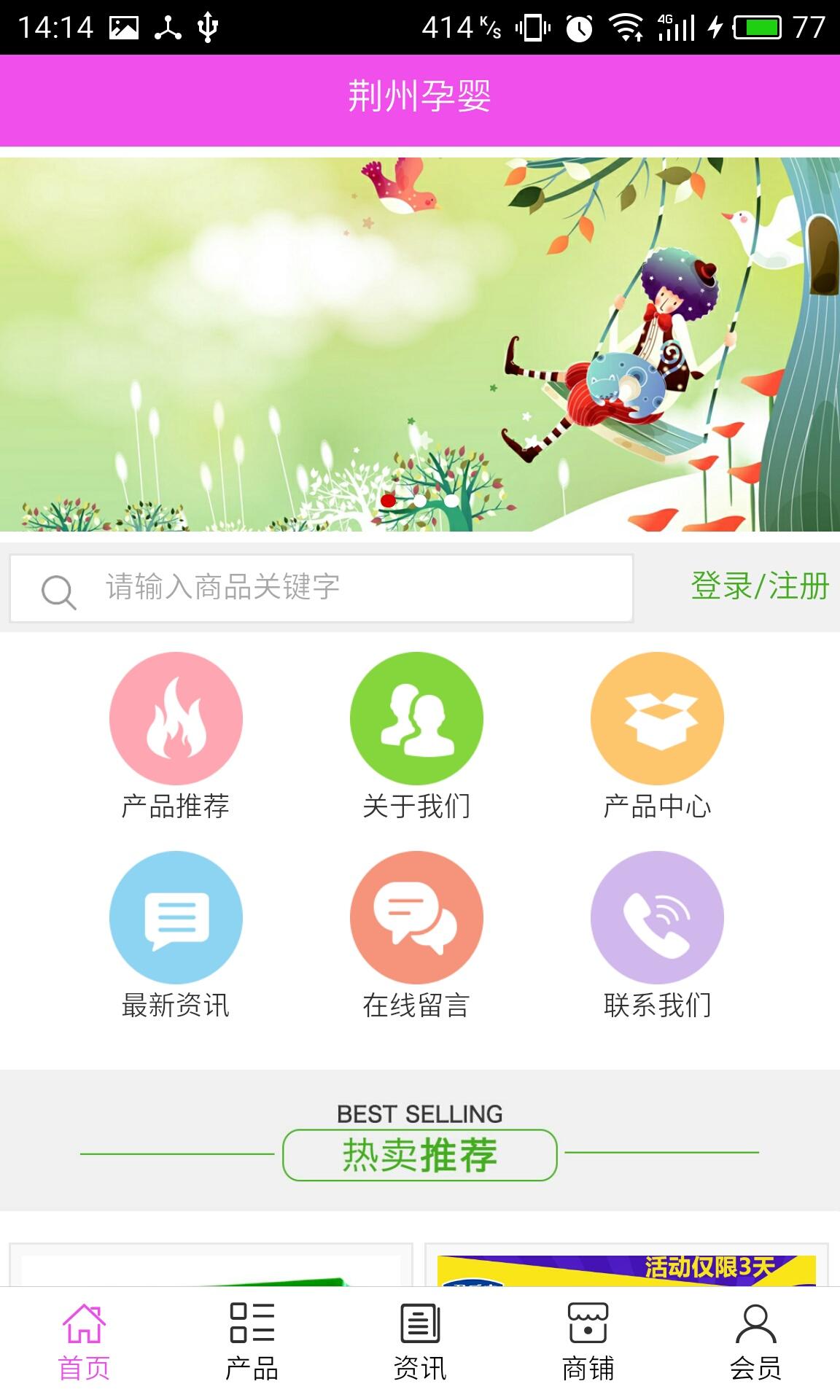 荆州孕婴客户端不仅具备购物、查询订单、搜索商品、行业资讯和产品评价等常用功能,而且还实现了手机版特有的会员注册登录、广告位、招商开店等功能。目标是整合当地品牌商、生产商、经销商,为商家和消费者之间提供一站式解决案。欢迎下载使用!
