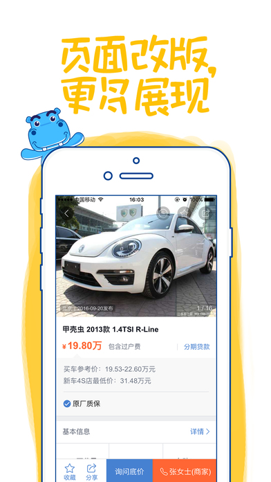 【买车】数万车辆实时发布,保障车源放心选购,保护买主个人隐私信息;【卖车】快速发车操作简便,免费发布及时出售,能做到一天之内审核完成;