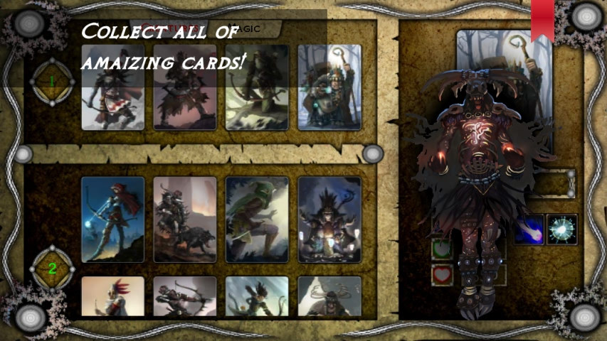 游戏开始,玩家需要选择自己的英雄(人类、兽人、食人魔、精灵)和职业(法师、巫师、战士),作为英雄你可以携带6张单位卡和4张技能卡,且拥有智力、敏捷、幸运、耐力5种英雄属性(单位卡属性则分为攻击、生命、防御3种主要属性),且每张卡片都有着自己的等级,玩家可通过对战提升卡牌的等级,不断强化自己的队伍。