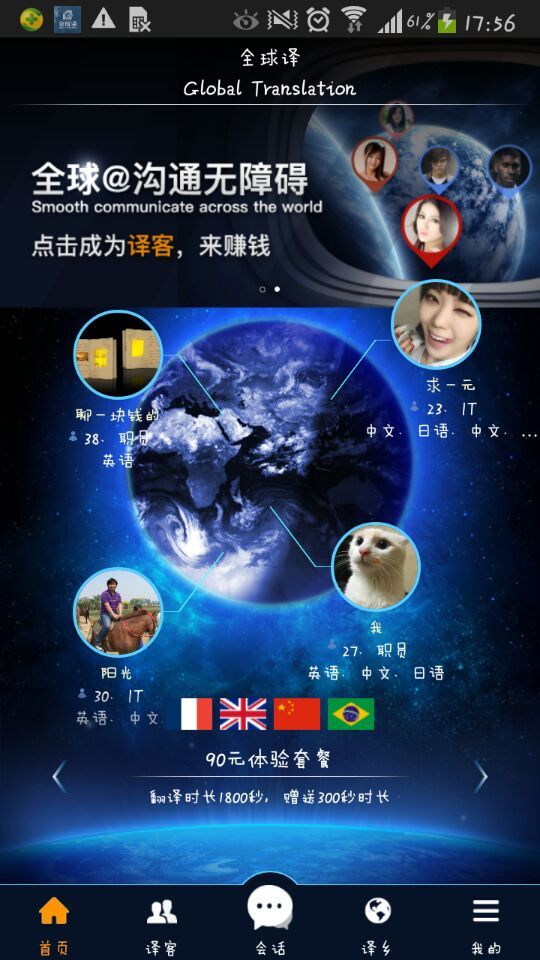 全球译系一款线上真人语音翻译软件。为您提供翻译的译客都是来自于不同职业的群体,包括导游、原住民、留学生以及华侨。