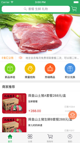 1、e食汇是为了满足广大肉食朋友“吃肉”需求而设计的在线肉类购物平台;2、主要产品包括肉类套餐、肉类礼盒、肉票、生鲜等,支持多种方式付款;