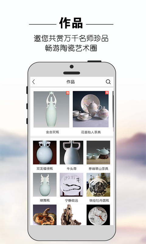 1、大师——官方权威认证,汇集众多国家、省、市级陶瓷大师。2、作品——邀您共赏万千名师珍品,畅游陶瓷艺术圈。