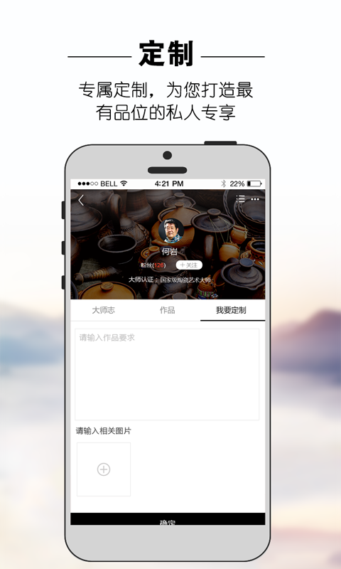 “陶瓷大师”app由中国陶瓷官网基于海量资源倾力打造,是国内一款专注于陶瓷大师及作品的移动电子商务平台,平台以国家、省、市级陶瓷艺术大师、工艺美术大师以及收藏爱好者为服务对象,为其提供宣传展示、鉴赏互动、私人定制、在线交易等电子商务服务,打造“互联网+陶瓷大师”的专属平台。【软件特点】