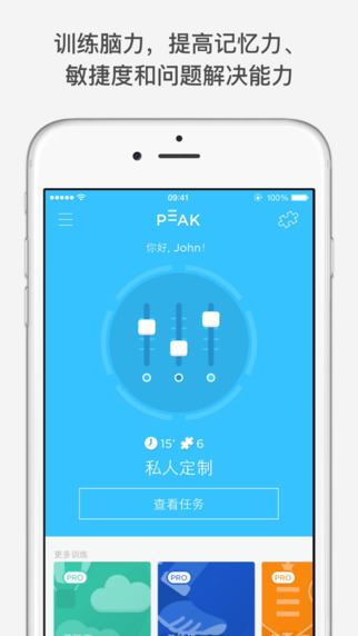 加入全球百万记的脑力训练者的行列共同体验Peak,一个在全球超过24个国家被评为2014最佳App的手机应用。玩的聪明,保持思绪敏锐。超过40个由神经学家和游戏专家精心设计来提高大脑认知能力的游戏来帮助您达到最佳状态。脑力教练-大脑的私人教练会帮您在对的时间找到合适的训练任务,从教练推荐中选择任务更有效的提高您的脑力。时间仓促时也可以试试轻松一刻一类的场景式训练任务。教练会跟踪用户表现,深度了解您的大脑,在您最需要的时候给最合适的帮助。免费使用或者加入Pro用户的行列,体验最好的脑力训练。