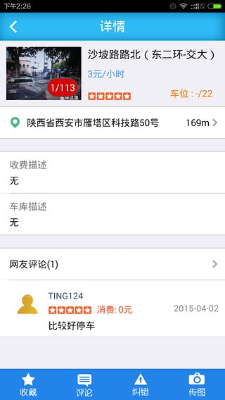 并提供到达停车库的路线,用户可以对停车库进行评价,