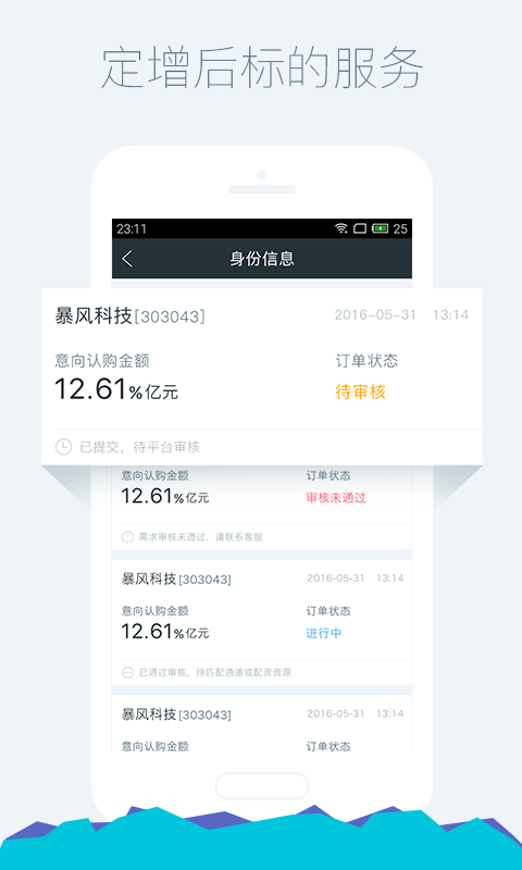 1、专注于定向增发,为定增投资者提供配资、领投、拼份、通道、质押融资、限售股转让等服务。2、六度金服也为定向增发投资者提供交易撮合服务。旨在为机构投资者、高净值自然人投资定增业务降低交易成本,提高交易效率。