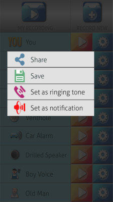 记录你的声音,或从您的手机选择录制,选择从声音库中最喜欢的有趣的声音效果。