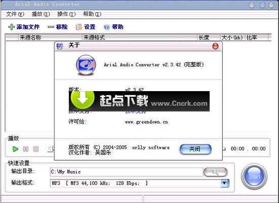 Arial Audio Converter V2.3.6 绿色特别版 一款专业的音频转换工具。 它可以在P3, WMA,OGG,MP2,WAV( PCM, DSP, GSM, ADPCM ), G721, G723, G726, VOX, ALAW, ULAW等声音格式之间相互转换。 使用这款非常易用的软件你可以批量转换文件而不必理会它们的源文件格式和目标文件格式。 Arial Audio Converter通过其内置播放器也支持播放功能。