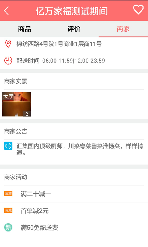 亿万家福同城购物,为消费者提供值得信赖的同城各类商家、消费评价、优惠信息和同城招聘以及快速配送服务,享受同城服务、跨城服务,实现零距离购物体验,引领本地生活新的方式。商家类型包括:餐饮美食、商店超市、化妆用品、打车服务、家政保洁、干洗水洗、电器电脑、鲜花蛋糕、新鲜水果、城内搬运、设备维修、粮油干货、服装鞋帽、家具家居、二手市场、城内药店、蔬菜海鲜、人员招聘、房屋信息、同城购物、同城配送。