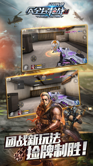 《全民枪战2.0-赫赫有名》是首款5V5公平竞技超人气FPS手游。逼真的画面、劲爆的效果、爽快的战斗,为你还原最真实的枪战战场;爆破模式,躲猫猫,失重模式,大头模式及幽灵爆破、生化阵地,娱乐排位等多种玩法让你的枪战不单调!超炫的枪支设计,丰富的枪支种类,精准的伤害计算,炎龙换皮肤,分期买武器等贴心功能全新上线,让你体验最贴心枪战游戏; 2016全新赛季等你与兄弟们杀出重围,夺超高额赛事奖金!还等什么?来战!【游戏特色】