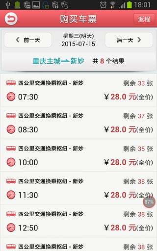 1、查询:方便、快速地查询重庆市公路客运售票网销售的长途汽车票信息。