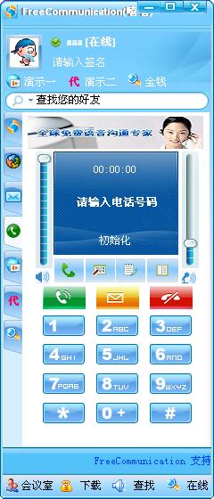 FreeCommunication(嘻嘻)可以让您迅速搭建自己的通讯运营平台。FreeCommunication 体积小,功能多,易部署,性能高,操作易的一款免费软件,它分为客户端和服务器端。采用C/S,B/S的模式提供服务。客户端支持灵活配置,包括皮肤,多语言,支持插件,自身又是控件,可以二次开发;后台数据库接口对外开放,很好和您的平台进行业务对接;整个系统非常方便业务扩充,灵活的使用方式,可以和您的系统无缝结合。非常适合企业应用,行业应用以及基础平台的组建等需求的应用。我们的口号是:让用户打造自己的综合运营平台。在这个高速发展分工越来越细致的当今,期待我们能共同握手,为您的腾飞插上双翼!