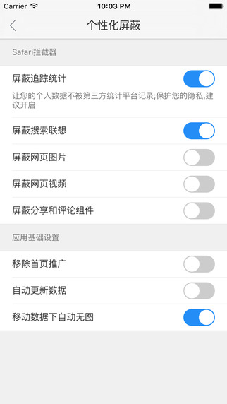 安装后,请在设置->Safari->内容拦截器,找到广告猎手,并全部开启。【更新日志】