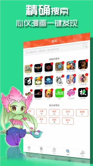 界面操作】界面风格简约时尚、功能齐全、画面清晰、操作简单!点击即可轻松进入游戏漫画世界!