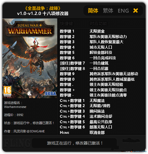 数字键1-无限资金数字键2-军队&英雄无限移动力