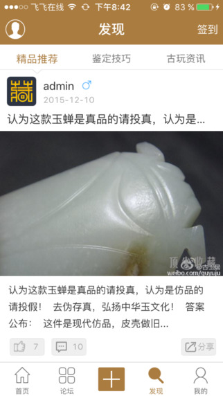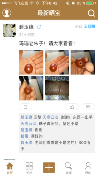 【晒宝】:众多藏友、玩家都在这里晒处自己的收藏的宝贝。像刷朋友圈一样刷古玩,没有试过吧,赶快下载尝试一下吧。【圈子】:找到属于自己的兴趣圈,找到志同道合的藏友,让收藏之路不再孤单!