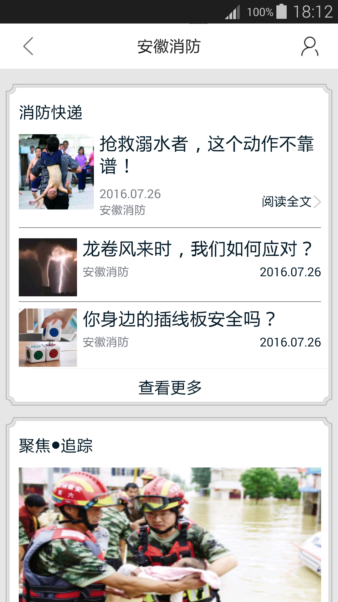 安徽消防是一款消防资讯阅读软件,专为安徽本地的用户设计,在这里你能看到最新的消防新闻、安全知识文章、科学的应对方法等内容,为安徽人民的日常安全保驾护航。