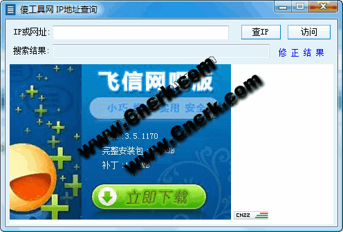 输入IP地址或网址查询地理地址. 包含了国内外大量IP地址数据,包括美国,欧洲,中国电信、中国网通、长城宽带、网通宽带、聚友宽带等ISP的最新准确IP地址数据. 自带IP数据库,可免费升级.
