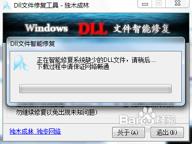 3、如果你并不想这么麻烦,你可以下载一个dll文件修复工具,让程序来自动完成这个修补的工作。在百度搜索dll文件修复工具,找到工具的下载地址然后下载下来。